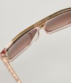 La monture rose poudré cristal contraste avec les verres marron dégradés.
