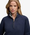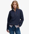 • Finitions côtelées avec fermeture à demi-zip sur un tissu en maille raglan