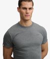 • Encolure ronde côtelée et manches courtes
